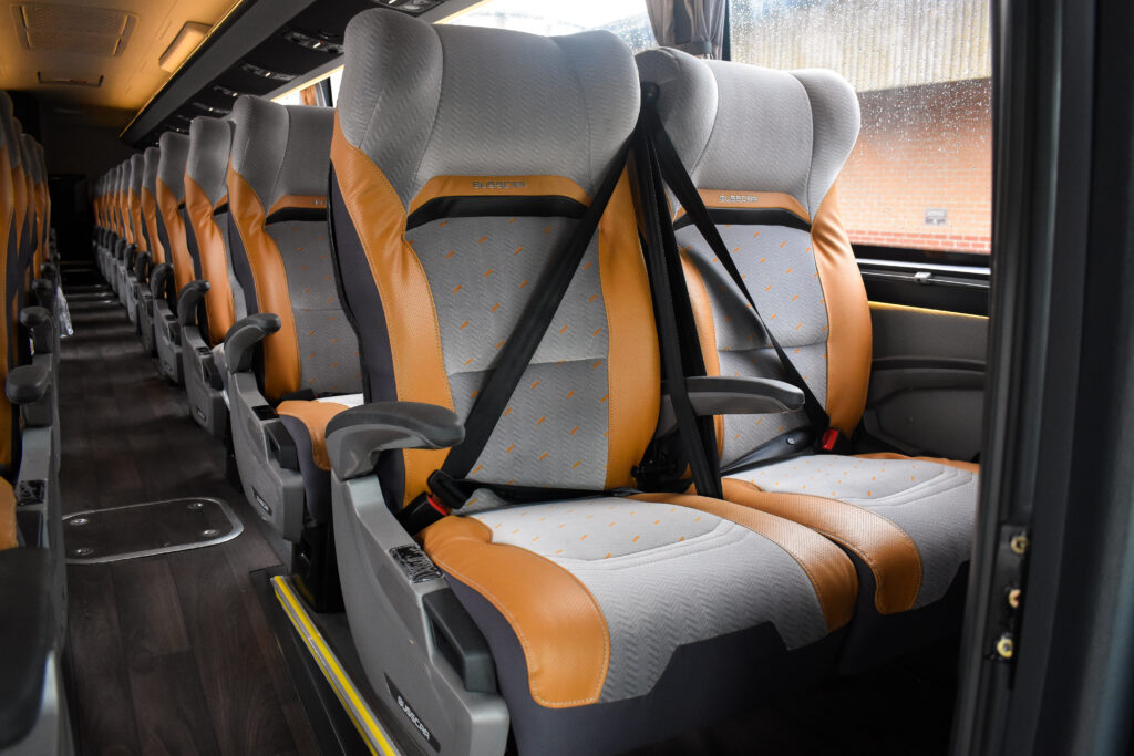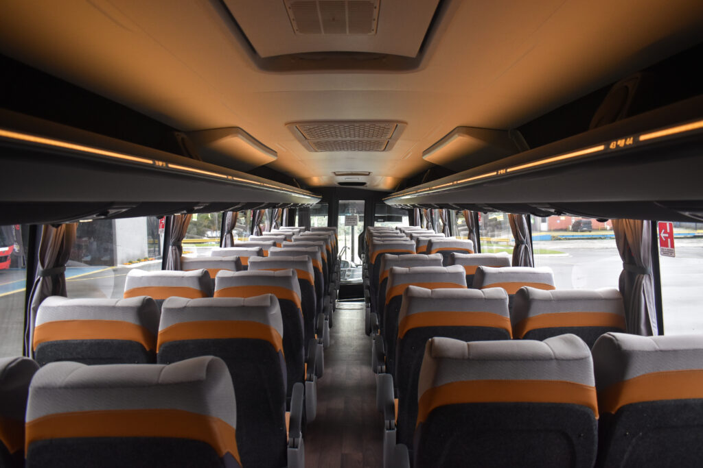 A atenção aos detalhes pode ser percebida em cada parte do veículo. São 46 poltronas Class Superpullman, que proporcionam conforto por meio de apoio de braço escamoteáveis, apoio para pés com balancim e porta-copos individuais. O sistema de ar-condicionado, equipado com filtro anti-pólen e renovação constante do ar, mantém o interior agradável e bem ventilado. A iluminação em LED realça o ambiente e traz conforto visual aos passageiros, enquanto o sanitário traseiro modular conta com sistema de odorização e ventilação própria, mantendo o espaço sempre limpo e confortável durante toda a viagem.
