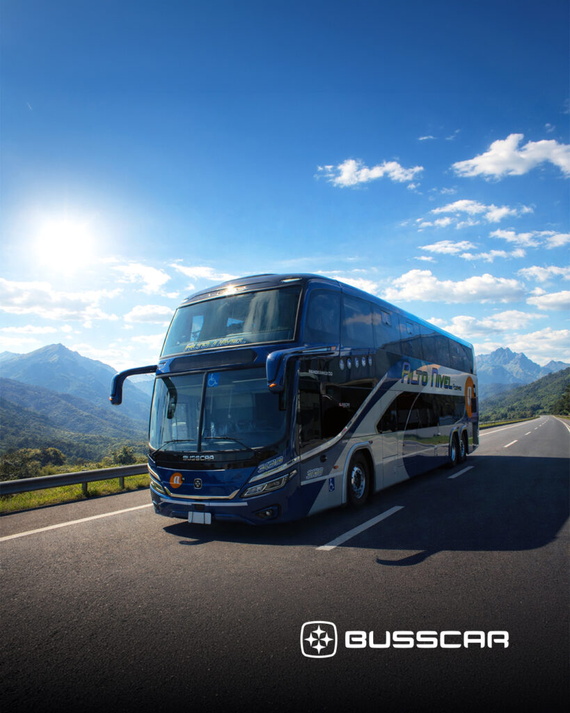 A BUSSCAR realizou a entrega de seis novos ônibus ao cliente Alto Nível, sendo três unidades do modelo Panorâmico DD NB1 e três unidades do Vissta Buss 365, uma delas destinada à TiendaLeón. A operação reforça a atuação internacional da empresa e consolida seu compromisso com soluções de transporte de alta qualidade, que impulsionam a mobilidade e o desenvolvimento do setor na América Latina.