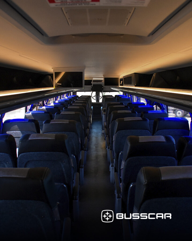 A configuração contempla ambientes independentes. No salão superior, são 46 poltronas Leito Turismo com espuma viscoelástica e apoios de braço lateral e central rebatíveis. No piso inferior, o veículo dispõe de 8 poltronas Cama Bus, além de sanitário completo e soluções de acessibilidade, como elevador para cadeirantes e assentos dedicados a pessoas com necessidades especiais.